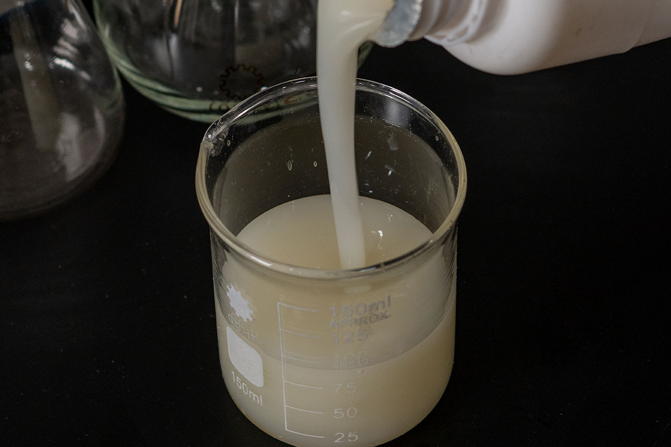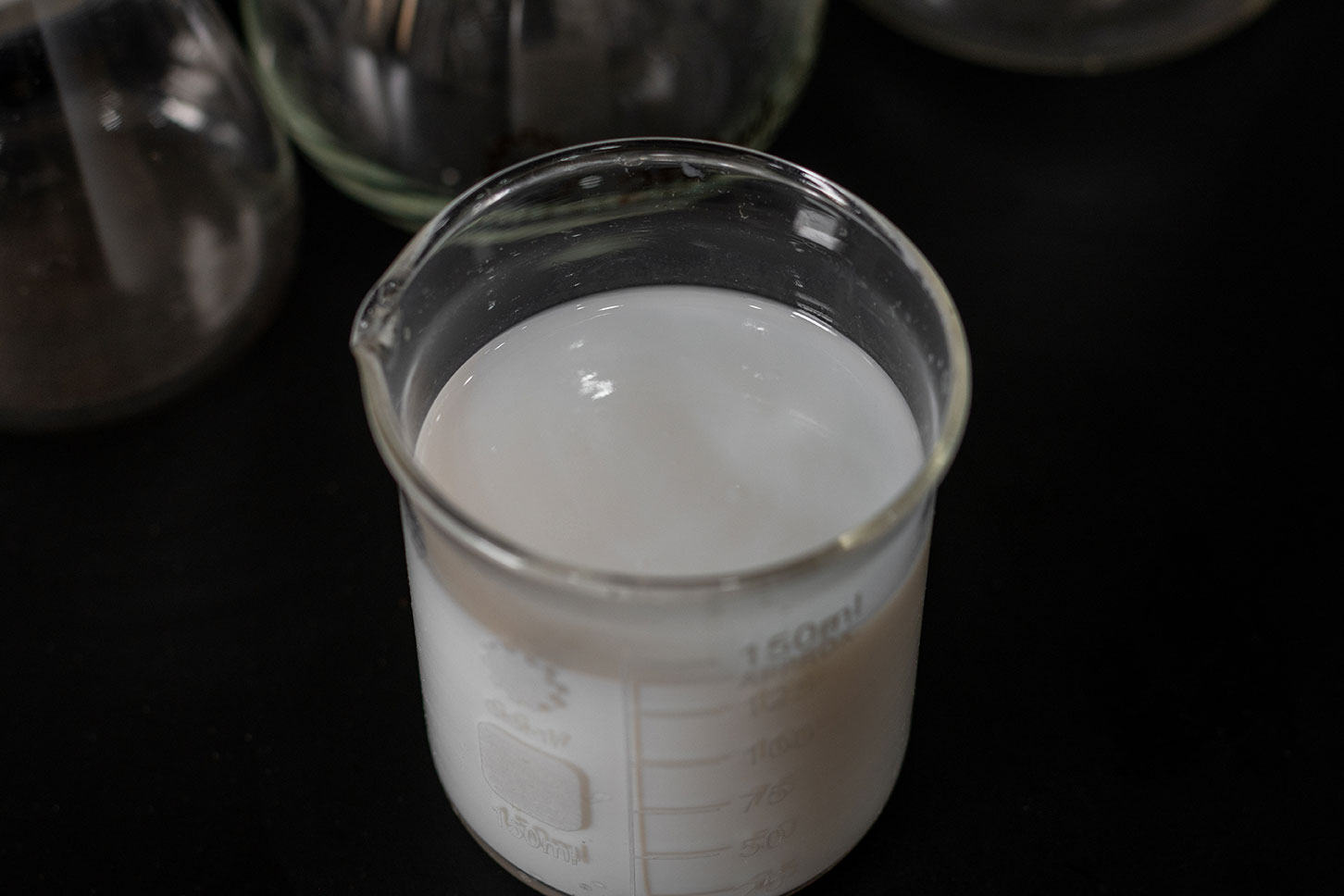 防水彈性乳液外觀(guān)為乳白色乳液狀,其主要成分為自交聯(lián)丙烯酸酯共聚型樹(shù)脂,屬于水性乳液,具有低粘度、高固含量的特點(diǎn)。
